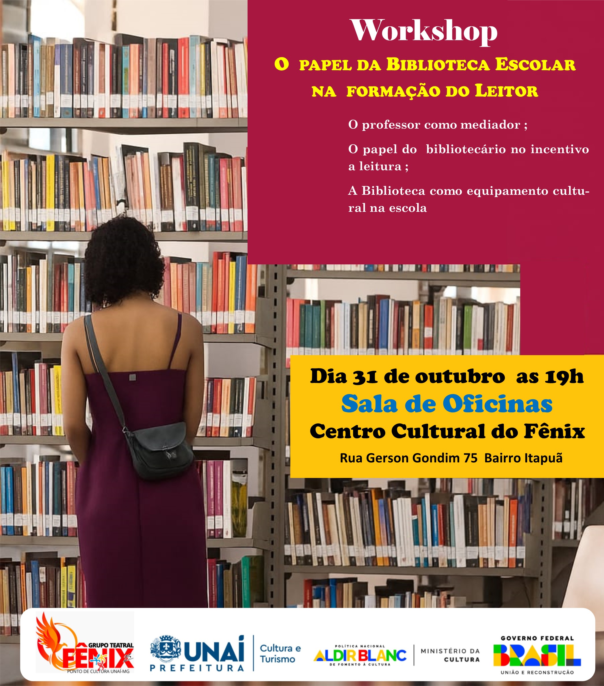 O workshop propõe uma reflexão sobre práticas pedagógicas e o papel transformador da leitura no ambiente escolar, destacando a biblioteca como um espaço vivo, de descobertas e de construção de saberes.